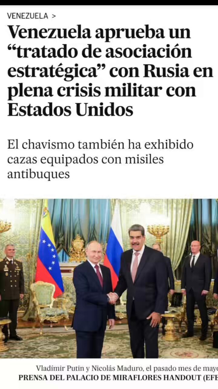 La Asamblea Nacional de Venezuela, controlada ampliamente por la bancada chavista, ha aprobado, en primera discusión, la que ha llamado Ley Aprobatoria del Tratado de Asociación Estratégica y Cooperación entre Venezuela y Rusia, como rezaba en el orden del día. Esta alianza surge en plena escalada militar con Estados Unidos, que ya ha pulverizado tres embarcaciones salidas de costas venezolanas y ha repetido en varias ocasiones que Nicolás Maduro, su presidente, deberá responder ante la justicia estadounidense por liderar, supuestamente, un cártel de la droga.